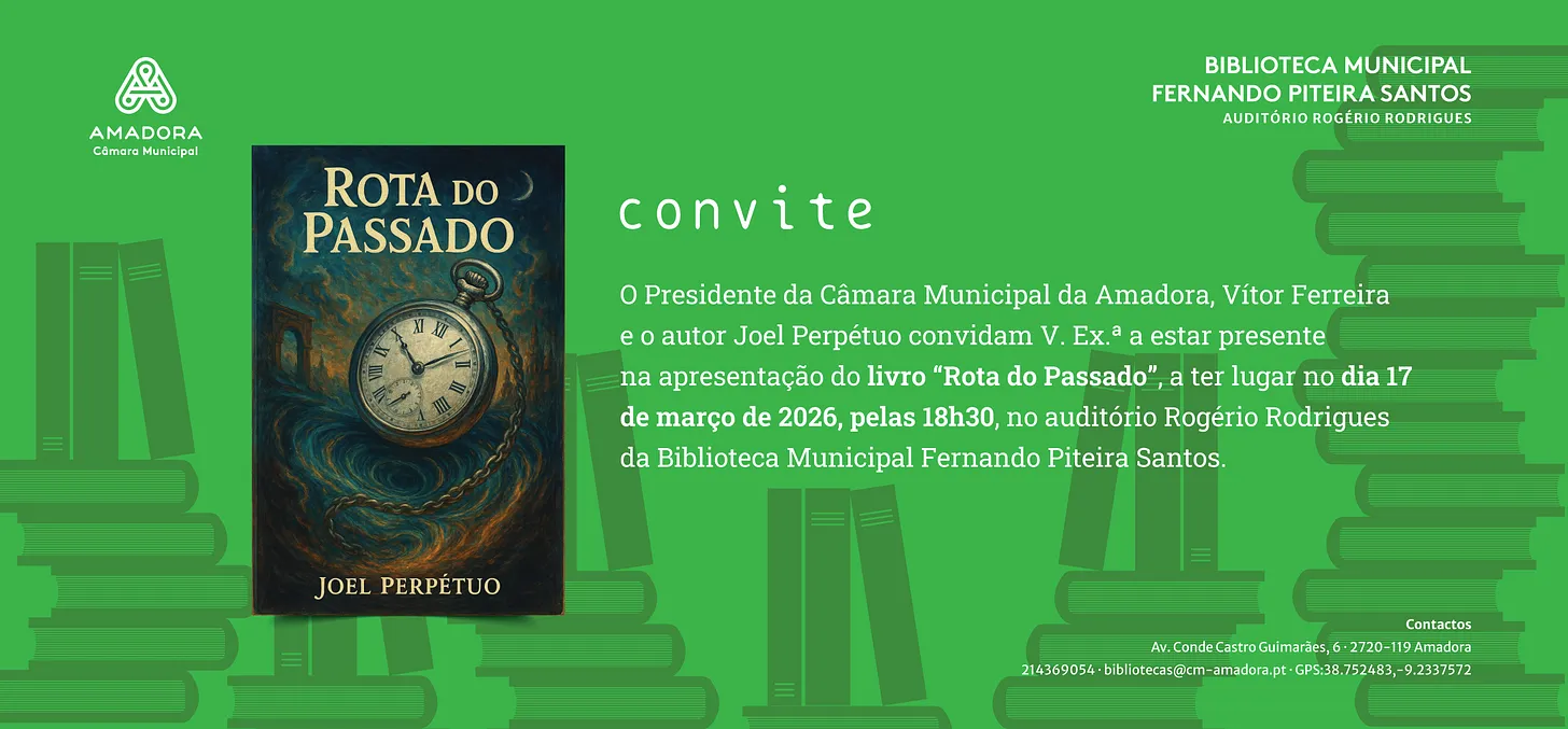 No próximo dia 17 de Março (terça-feira), a viagem pela nossa História faz uma paragem obrigatória na Amadora. É com enorme entusiasmo que convido todos os leitores e entusiastas da nossa herança cultural para a apresentação do meu livro, “Rota do Passado”, na Biblioteca Municipal Fernando Piteira Santos.